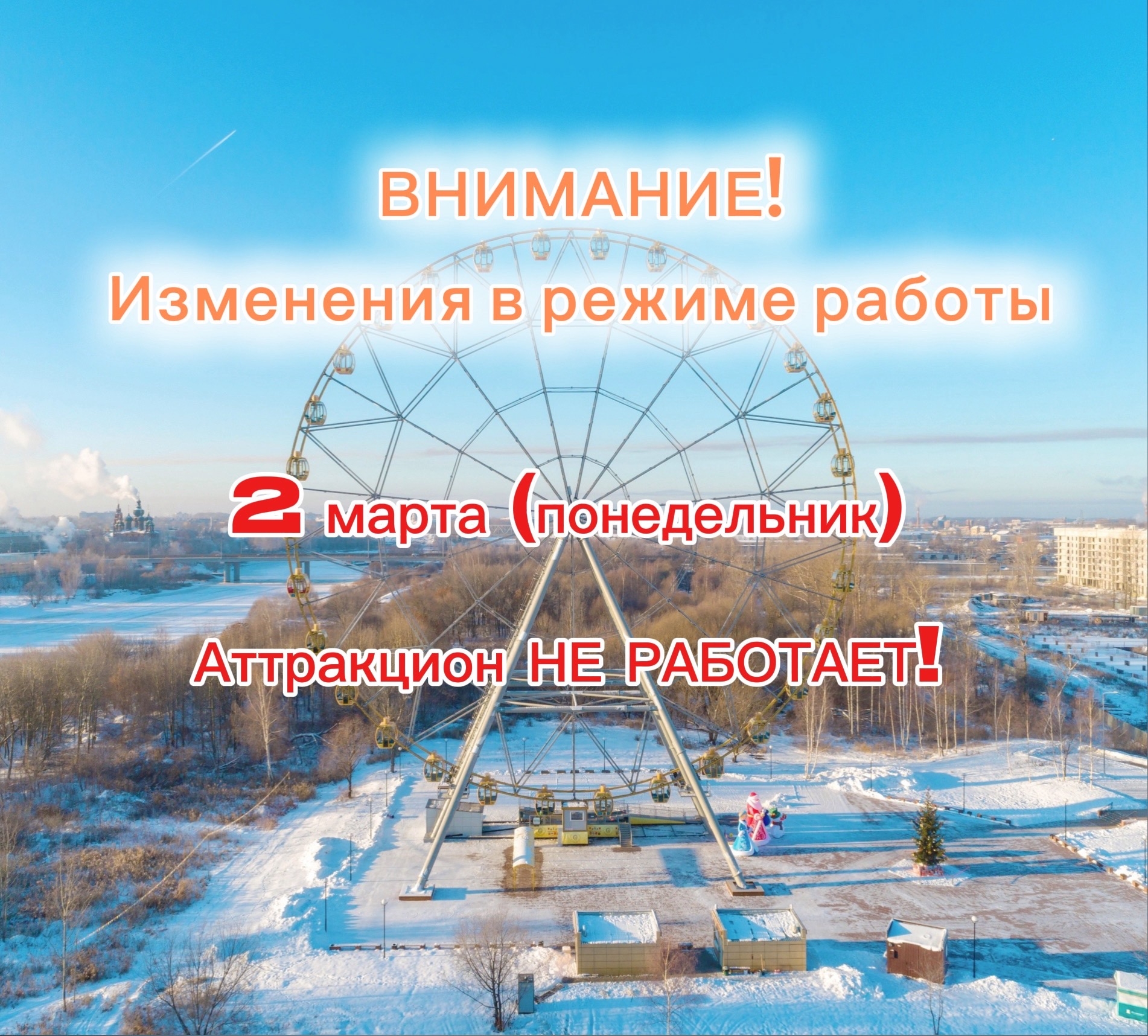 Обратите внимание, что колесо обозрения "Золотое кольцо" может иногда приостанавливать свою работу из-за погодных условий.